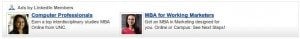 In your ad you are given a space for a small image (branded or not), a headline (up to 25 characters), and a 75 word description to catch the attention of the audience. Once launched, the ads can be seen at the right of each LinkedIn page and in a banner at the bottom of each page.